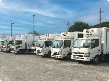本社は埼玉県川口市にあり、従業員数は全体で100名程になります。こちらの幸手営業所ではドライバー35名が在籍し、主に飲食店や各種スーパーのセンターなどに冷蔵・冷凍品を配送しています。